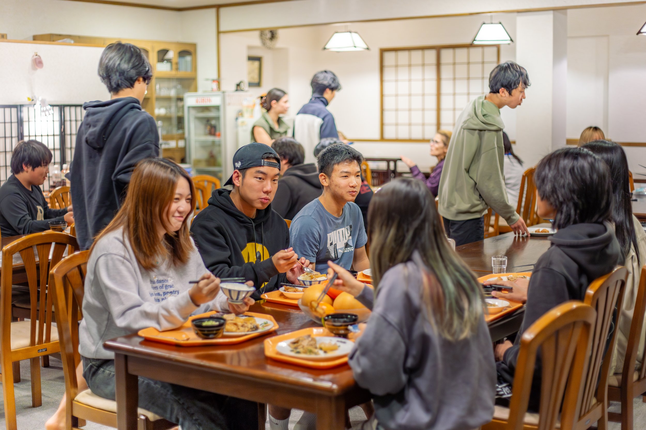 Blanche, our original dorm, opened in August 2022 after an extensive renovation of a traditional Japanese inn. It features a commercial kitchen where our chef prepares wholesome meals for all of the student body and faculty for lunch, as well as study areas, communal shared lounge spaces and easy access to outdoor spaces—including a public field right next door.